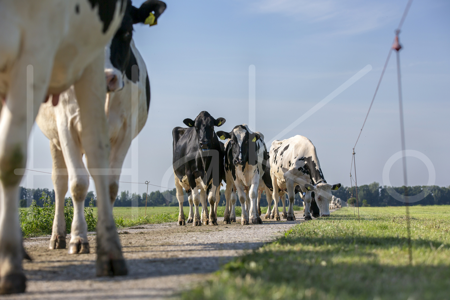 Zwartbonte koeien op weg naar de melkstal om gemolken te worden.