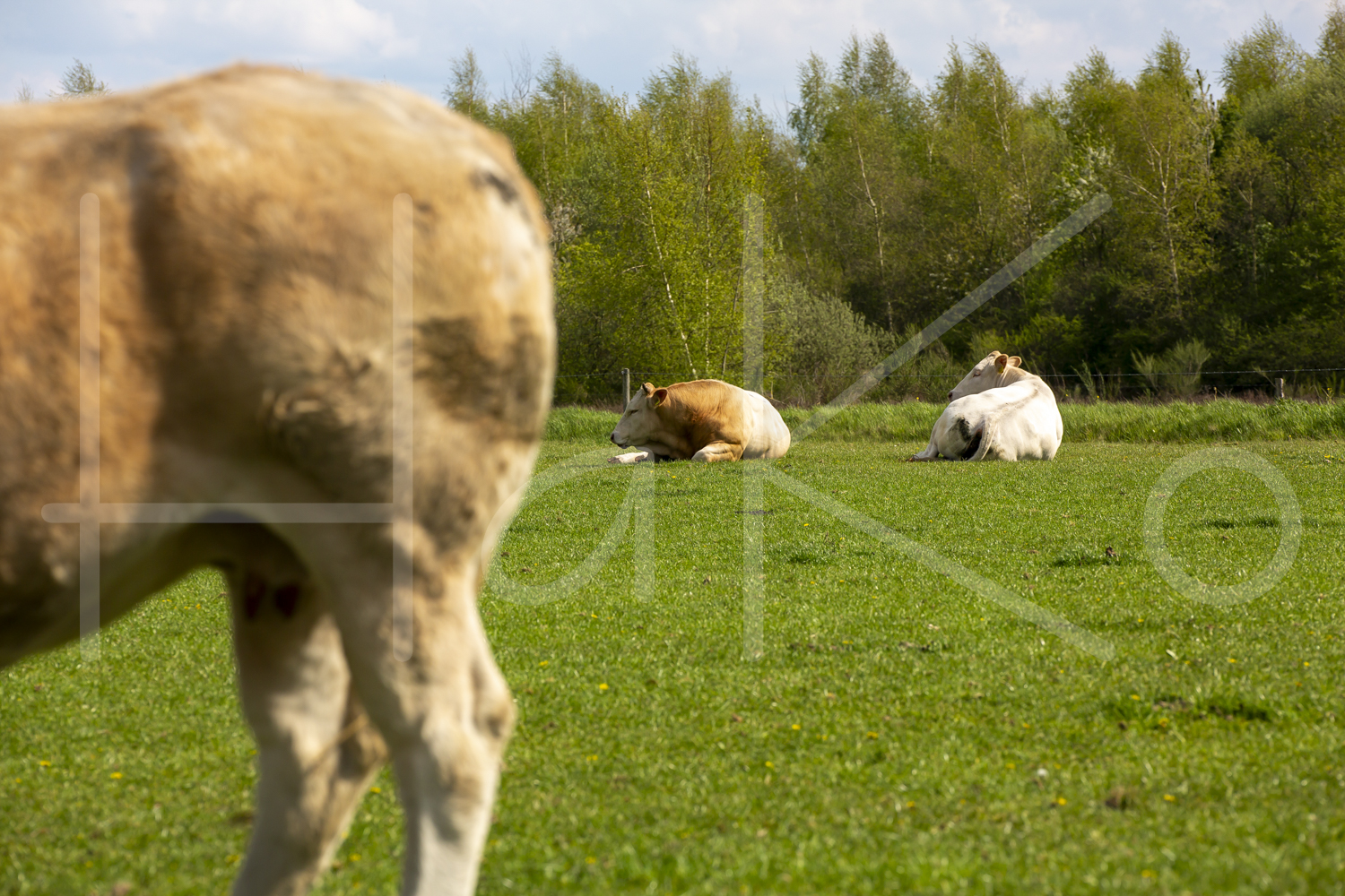 Blonde d’Aquitaine koeien in de weide