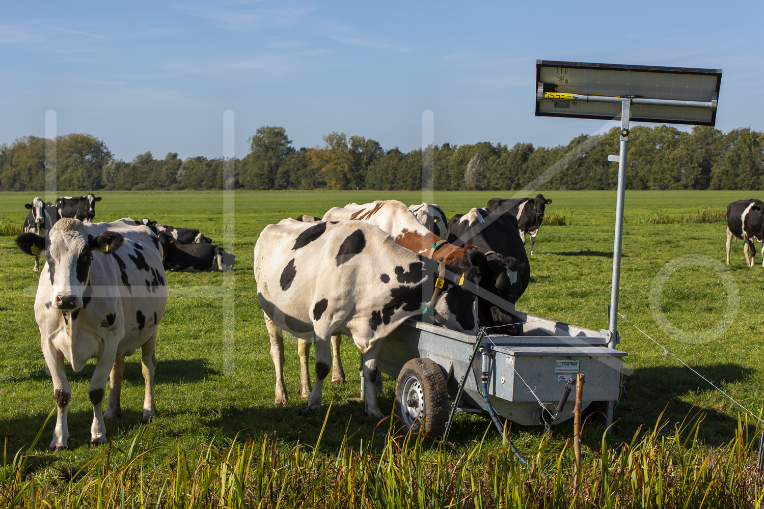 Koeien drinken uit waterbak.