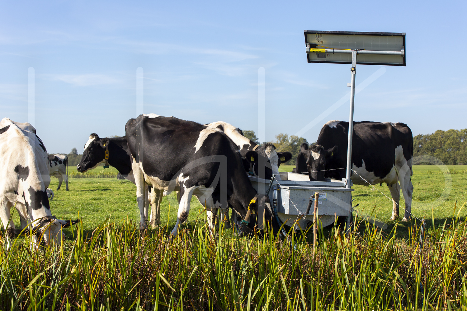 Koeien drinken uit waterbak.