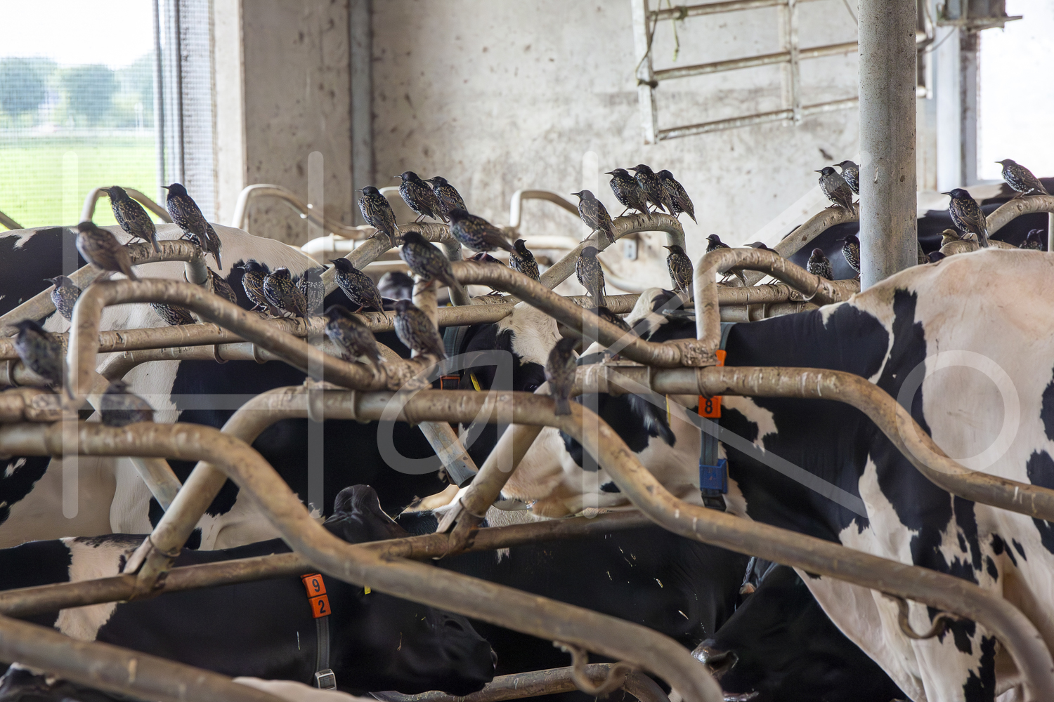 Spreeuwen in de stal.