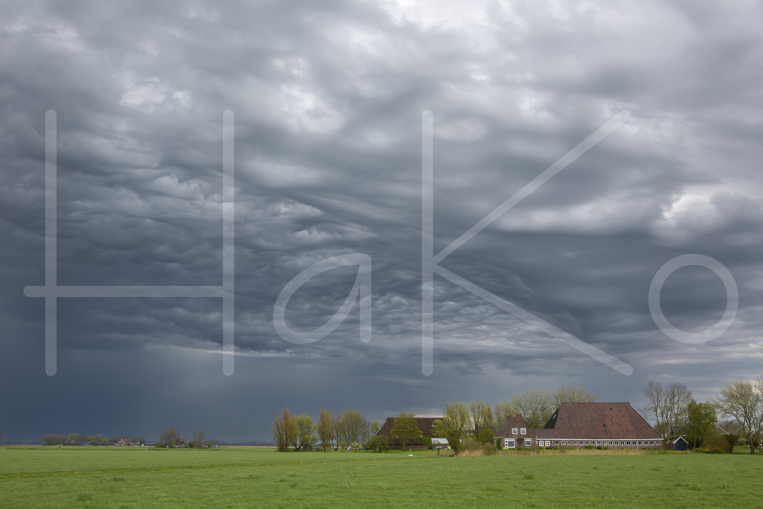 Dreigende lucht boven het boerenlandschap.