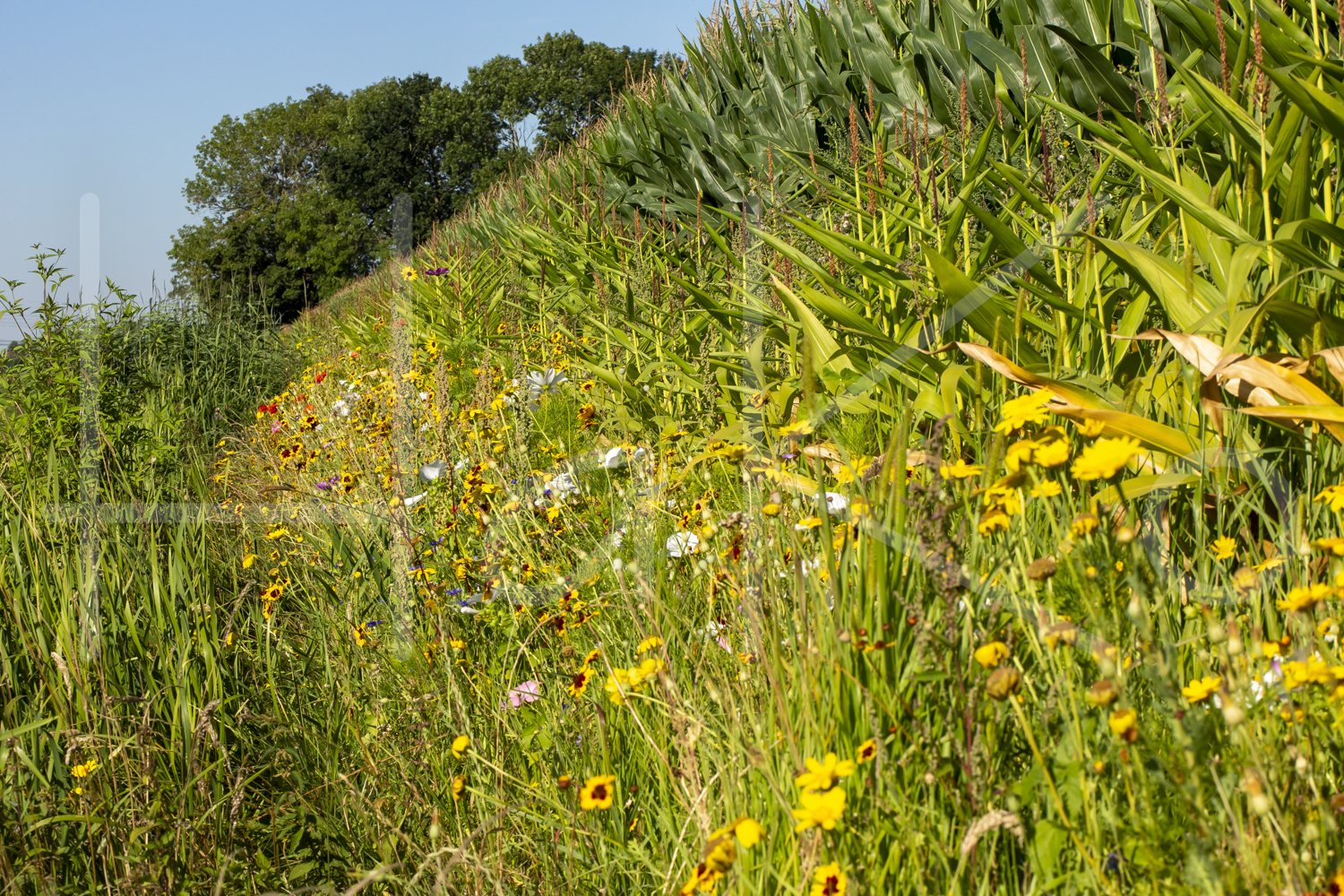 Maïsgewas met bloemenstrook.
