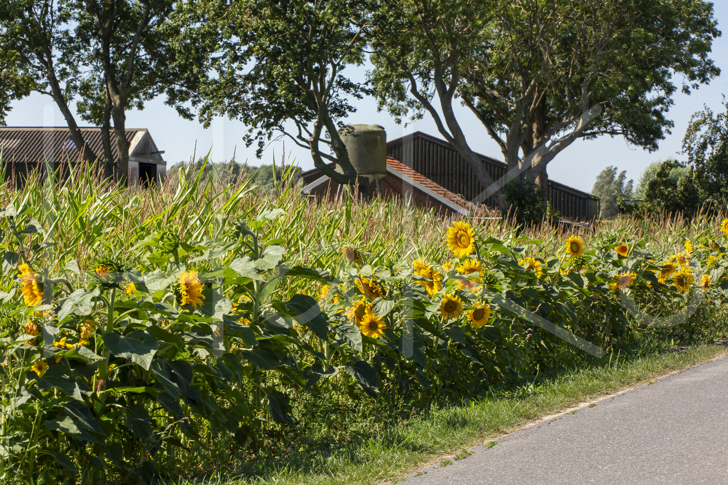 Maïsgewas met bloemenstrook.