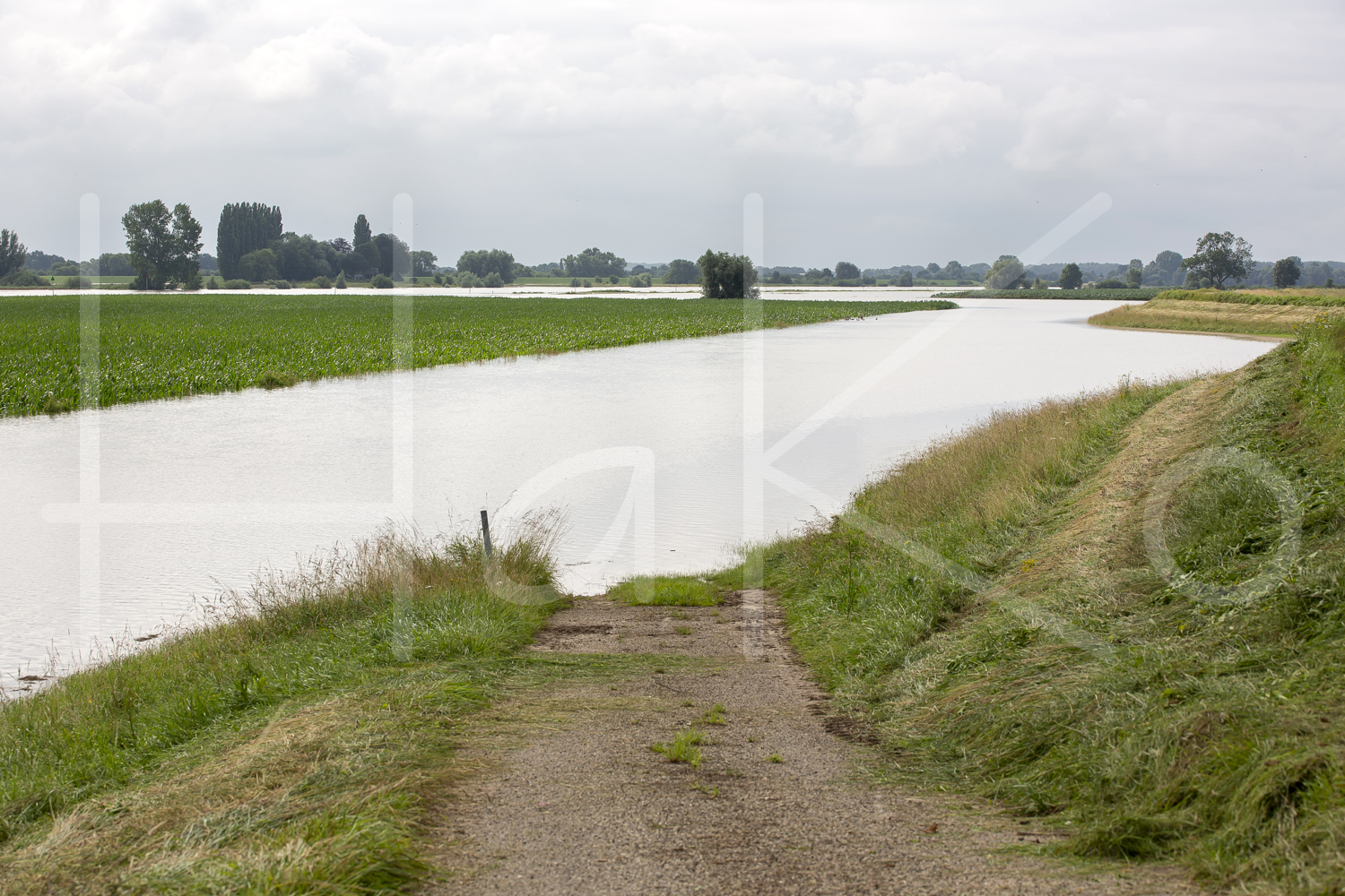 Hoog water langs de rivier.