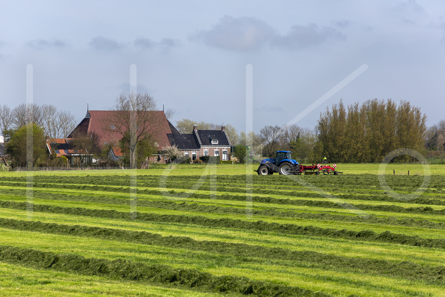 Het wiersen van het gemaaide gras