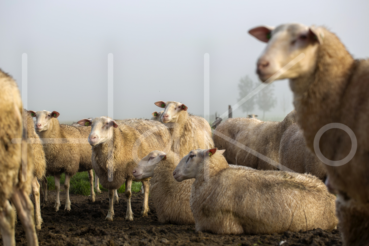 Schapen in de mist.