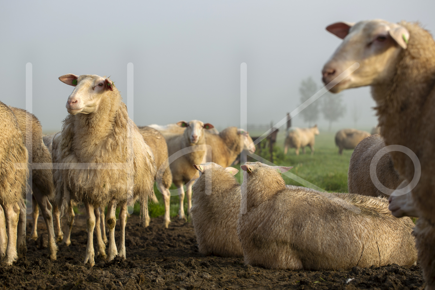 Schapen in de mist.