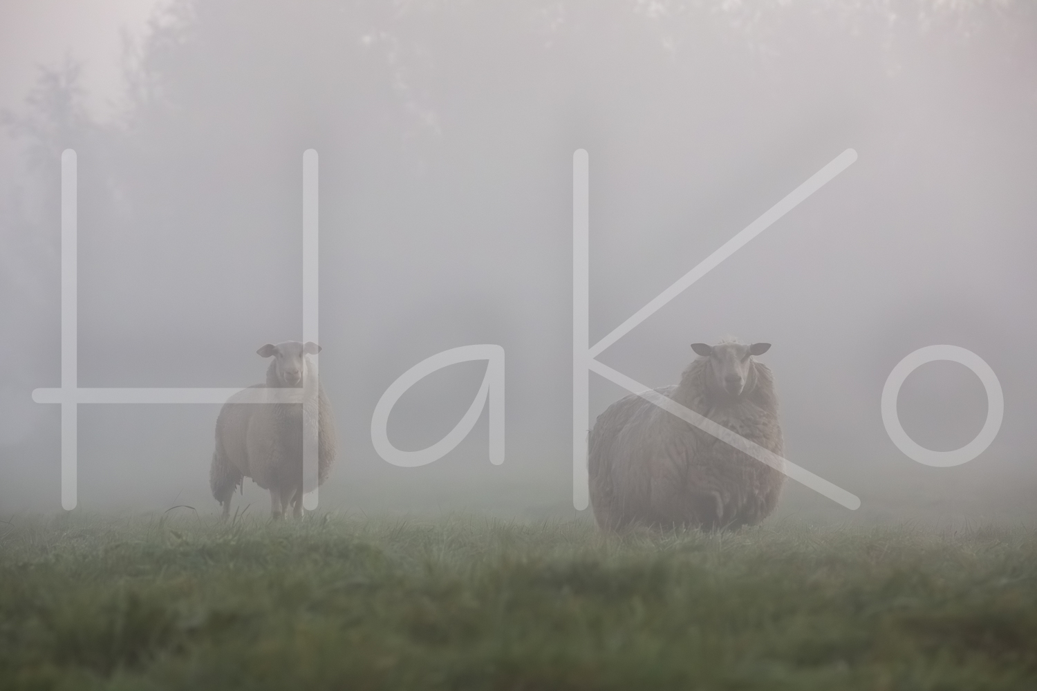 Schapen in de mist.