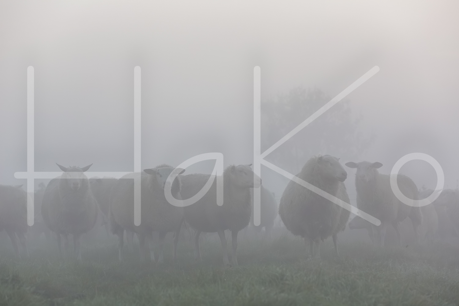 Schapen in de mist.