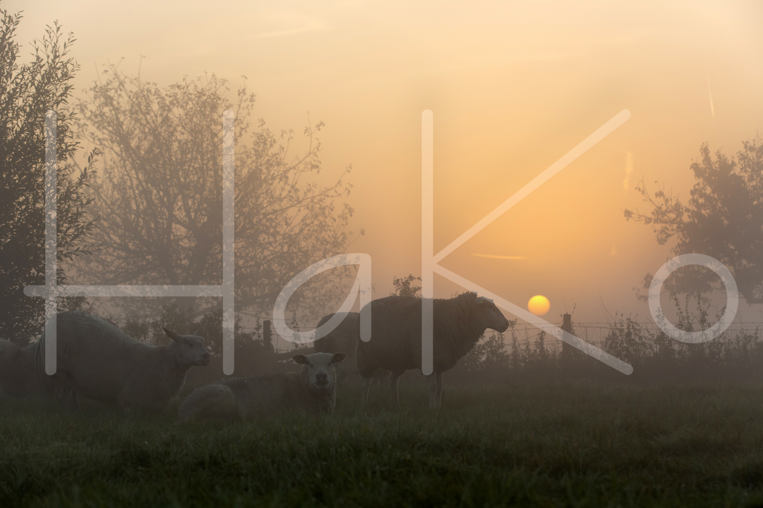 Schapen in de mist.
