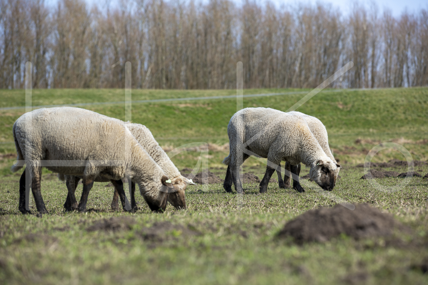 Duitse zwartkop schapen langs de dijk.
